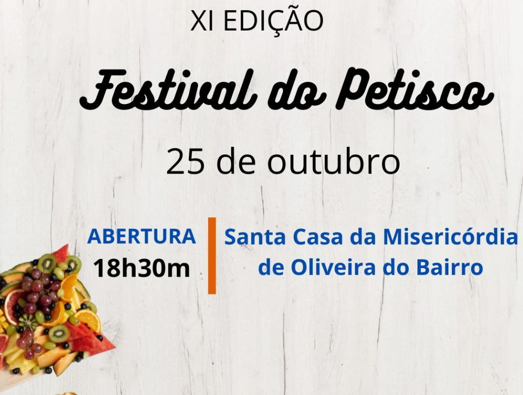 A Santa Casa da Misericórdia de Oliveira do Bairro vai organizar, no próximo dia 25 de outubro, com abertura marcada às 18h30, a 11ª edição do Festival do Petisco.