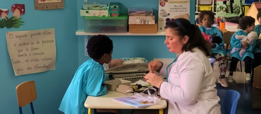 Individualmente, cada criança vivenciou uma consulta, falando sobre a identidade do seu filho e assistindo o bebé sendo auscultado e medido, quer a temperatura, como as medidas do corpo, peso… e no final a vacina.
